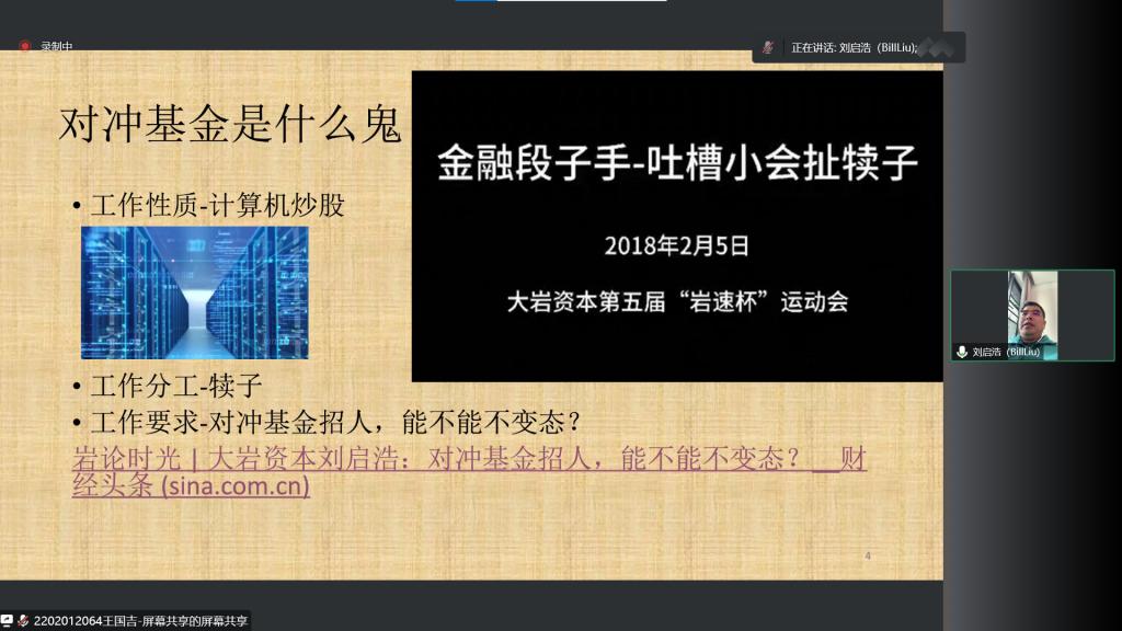 主讲人简介:大岩资本创始合伙人。北京工业大学管理科学与工程博士、概率论与数理统计硕士;上海社会科学院经济学博士后、荷兰蒂尔堡大学公派留学访问学者、香港科技大学访问学者,FRM。2008年至2010年,在申银万国证券任职,主要从事资产配置、风险管理和量化投资策略博士后研究。2010年至2012年,在中国银河证券资产管理总部任职,主要从事量化投资策略研究、产品设计等工作。2013年,作为联合创始人创立大岩资本,并担任首席风险官、投资经理等职位。