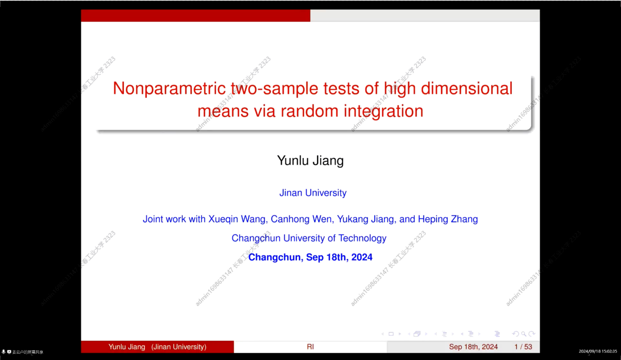 本次学术交流会拓展了同学们的学术视野,也激发了同学们的学习热情,更加努力学习研究新的领域与方法,并使老师和同学们对随机积分的高维均值向量的非参数双样本检验有了更深的理解,聆听报告的师生均表示受益匪浅。