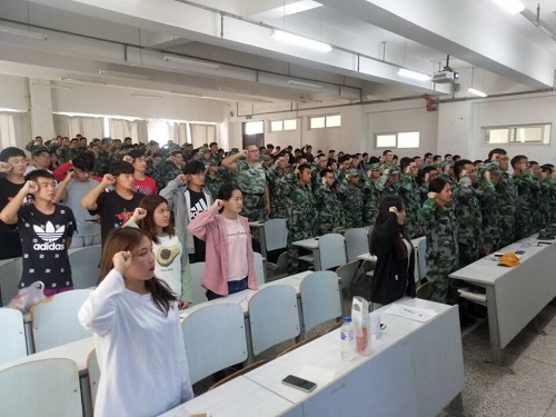 在活动的开始,由180802班团支书张宁馨带领全体同学讼唱国歌。嘹亮的国歌之后,开始了此次主题团日活动,依次由2019级的新生代表黎浪、茆欣意、金虹桥、宋佳四位上台进行团日下的演讲。四位同学以激情高昂的面貌分别演讲了以“无奋斗,不青春”、“不锁,何获”、“青春心向党,建功新时代”、“争做新青年,勇担新使命”为主题的团旗下的演讲。演讲过后,通过影像带领全体同学观看了新中国70年的变化。70年来,我们的祖国一路经历艰辛,终于成就了如今的辉煌。大家通过本次观影,能够深刻感悟,反思过去,认清当下,创造未来。大会结束前,全体同学起立,举起右手,由组织部副部盖梦琳带领同学们重温了入团誓词。不忘初心,牢记使命,用知识武装头脑,以坚韧不拔的意志和无私无畏的勇气战胜前进道路上的一切艰难险阻。