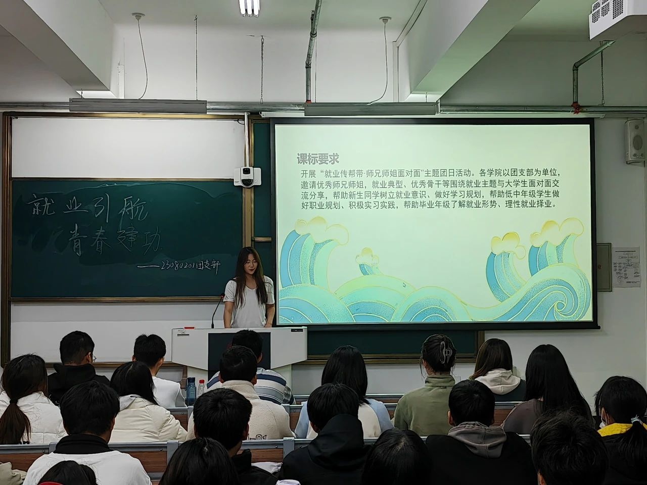 于2023年11月14日下午七点在东区主楼201教室开展了“就业传帮带,师兄师姐面对面”主题团日活动,往届优秀学长学姐以及大一、大二学生出席本次活动。